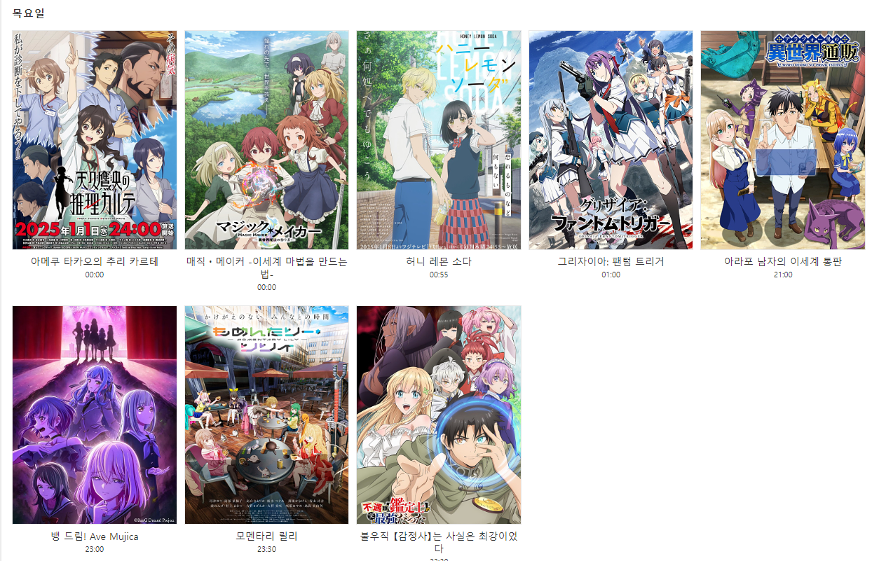| 2025년 1월신작애니 1분기 아메쿠 타카오의 추리 카르테 (0) | 2025.01.01 |